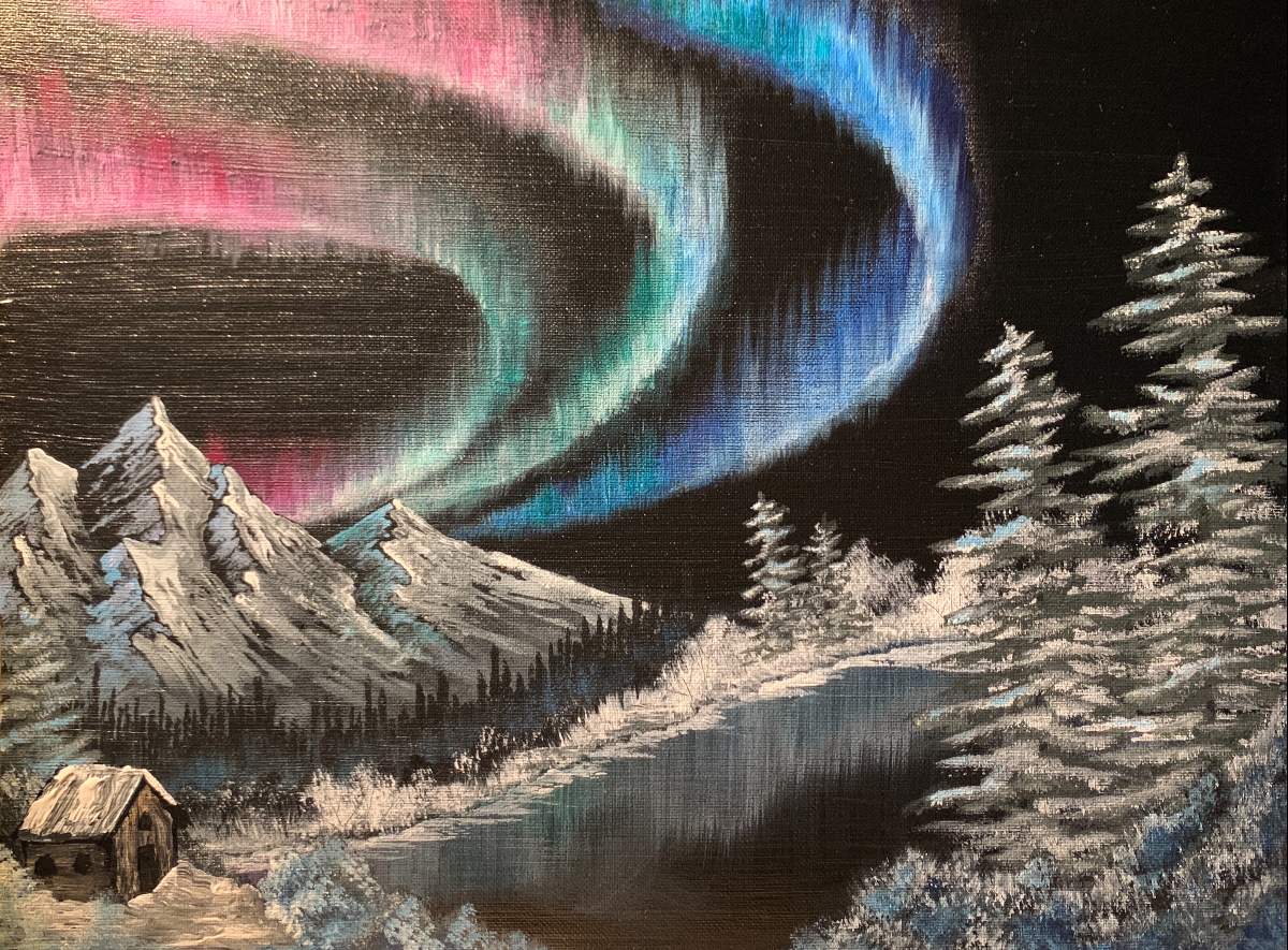 This is my attempt with acrylics, I am going to try the same painting with oils next. The aurora was very difficult with acrylics but Iām happy with it.