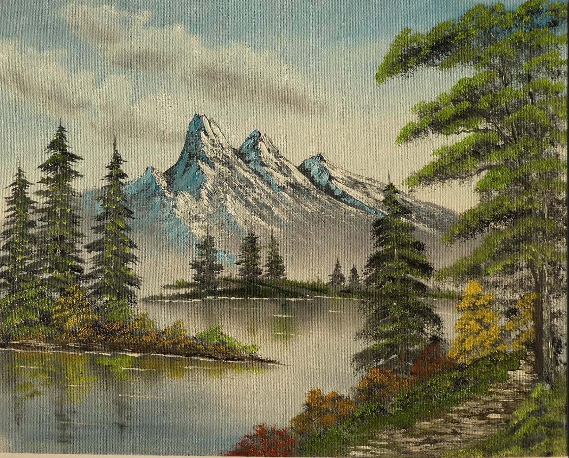 On canvasboard 30x24 cm, added a little bit of dark color to the clouds, the rest of the painting I tried to follow Bob's example.