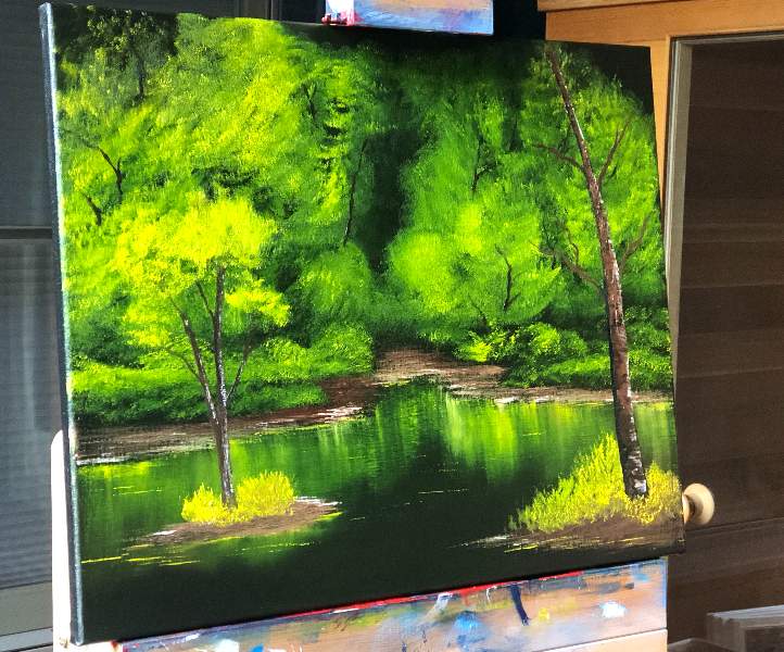 This is my second attempt at this one. The first was truly awful and I wound up painting over it with some practice trees!