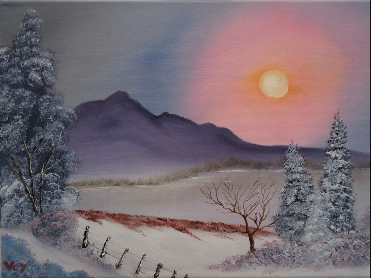Canvas used was a budget 12"x16". Easiest parts were ..... perhaps the snow banks and the fence. Though parts were getting distincting into snow foliage. I guess I should've been more violent there since my front bushes left and right are not good.