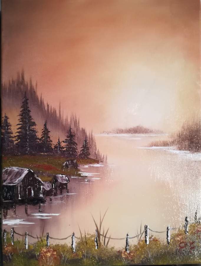 I use oil paint soluble in water, maybe that paint is not as thick as Bob Ross's. It is difficult to paint bushes and trees. All tips more than welcome.