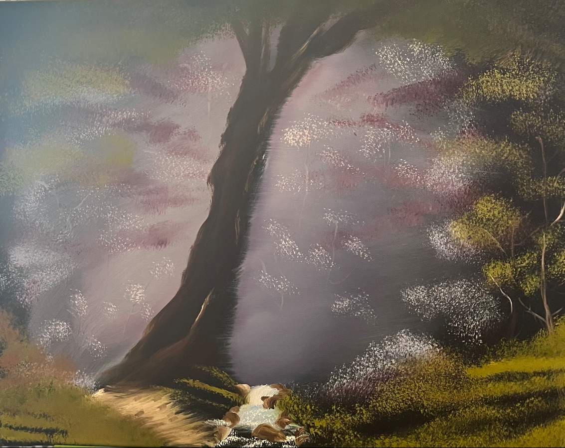 I had a hard time following the video. I wasn’t sure if I was supposed to let the tree shape dry in the beginning. I really need to work on background trees and building up! This had a lot of great lessons learned!