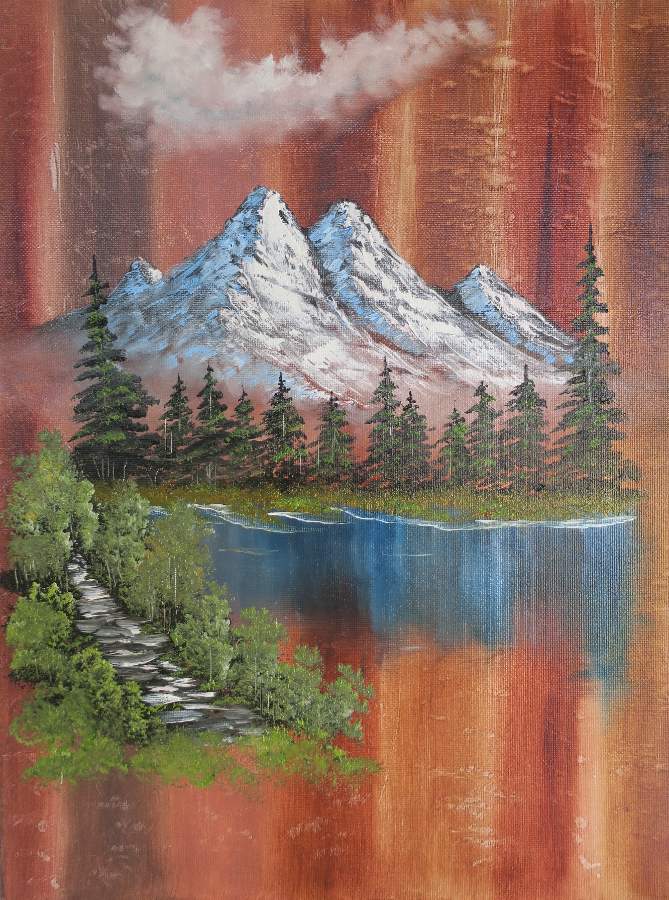 Couldn't wait to try this awesome painting, because of the wood effect. I must say: the effect exceeded my expectation: great effect with minimal effort. Difficult was, as I already expected, the thinner on the canvas, in my case therpentine, which made the paint on some spots unexpected thin. Maybe it's better to let the background dry before starting, but therefore I was too impatient. On stretched canvas 30 x 40 cm.