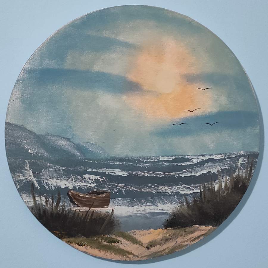 Not a big fan of my waves either but really wanted to try this one. The boat made it tempting enough. I want to know how Bob makes his waves. I tried it with the way he is doing it but you can see my result. Whats the technique?