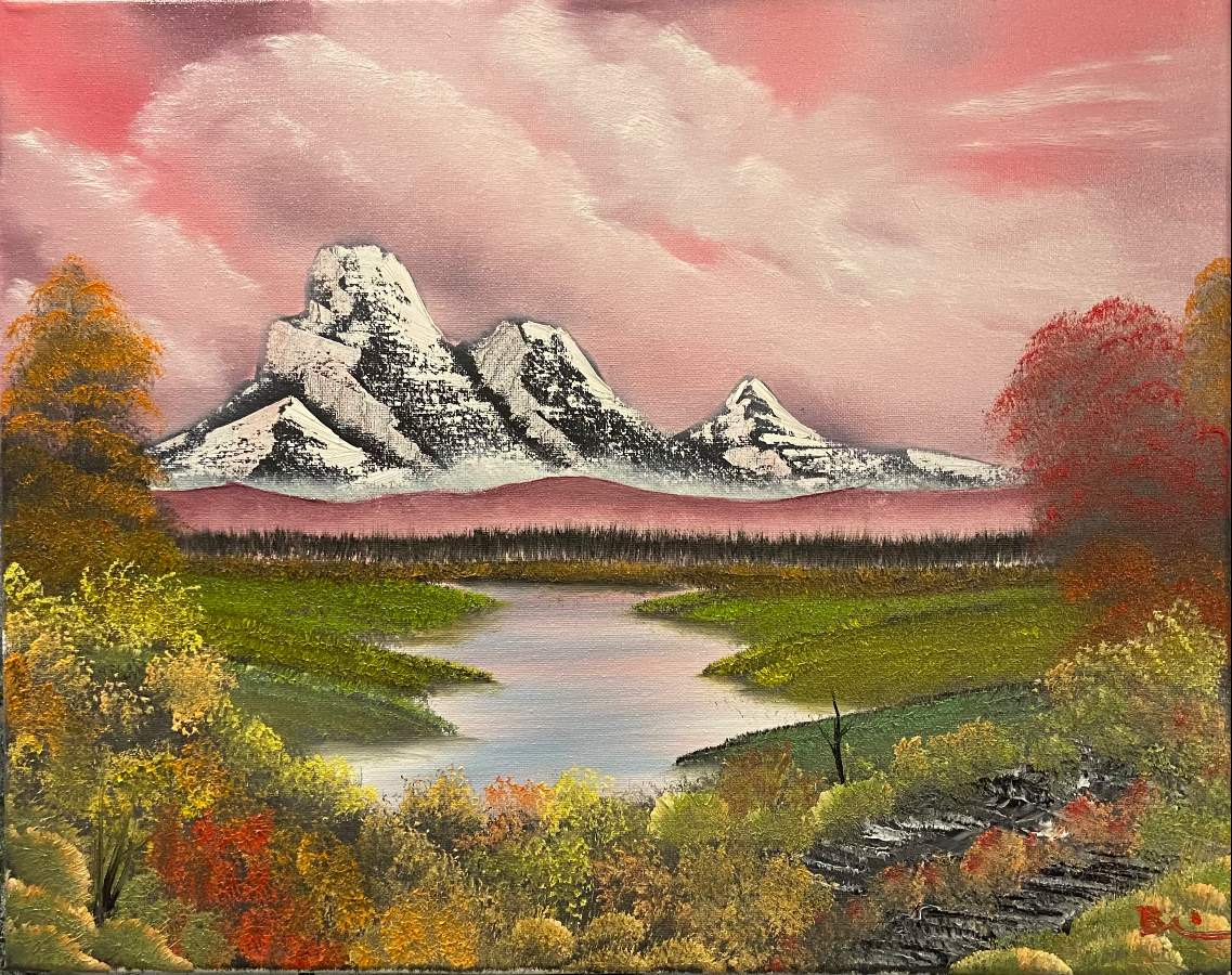 I had great fun painting this one. I wanted it brighter with some fall colors so I referenced Mgiese84’s version. I am happy with the results and like the sky and mountains the best. 16x20