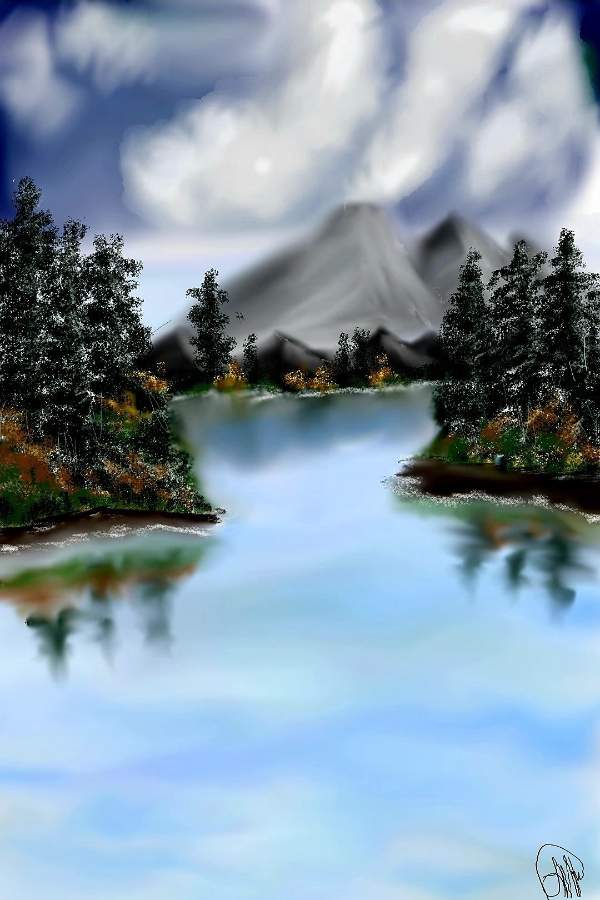 My second attempt at a Bob Ross painting. I'll be attempting the Season 1 series and hopefully progress to the next season & on. This was done on my phone so it's a digital drawing. Don't stone me for not having real canvas, paints, brushes; my phone is my canvas & my stylus is my brush & with them, I hope to let them tell their story.