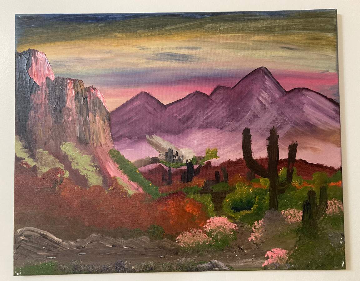 My version of 'Southwest Serenity' using acrylic paints liquitex basic red, yellow, blue, black and white.
