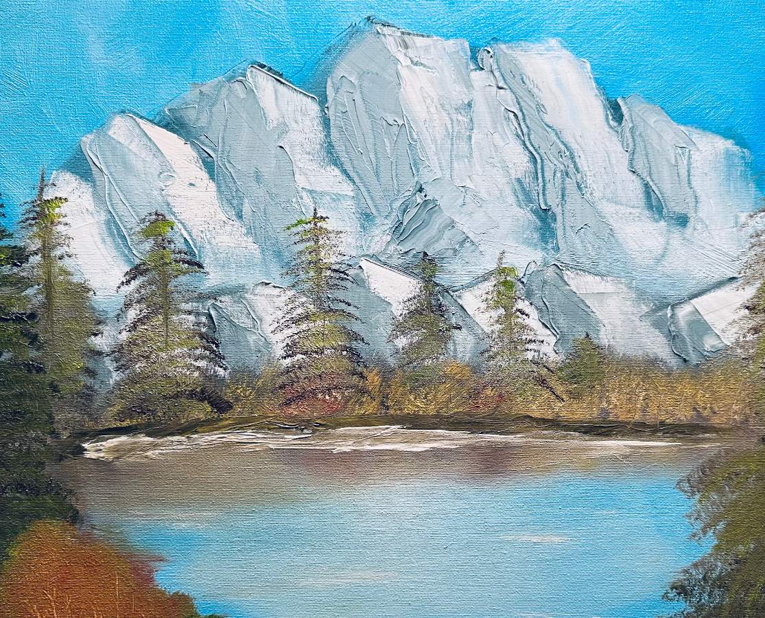 Nice ...but watch Bobs technique again for painting mountains, the light should only hit on one side....Welcome to TIB!