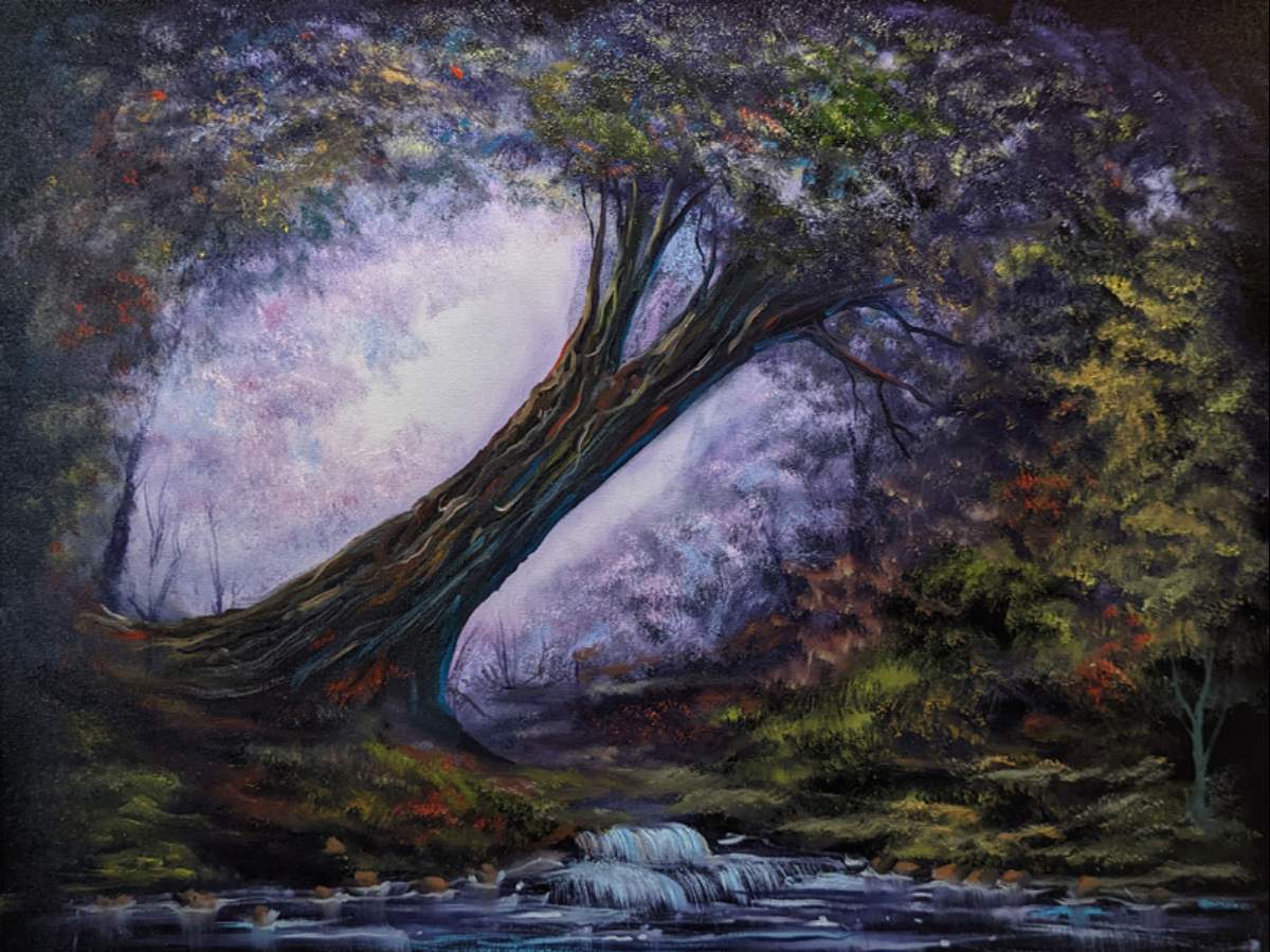 Wow! I love the colors that you used and that tree won’t be standing for much longer it appears. lol
