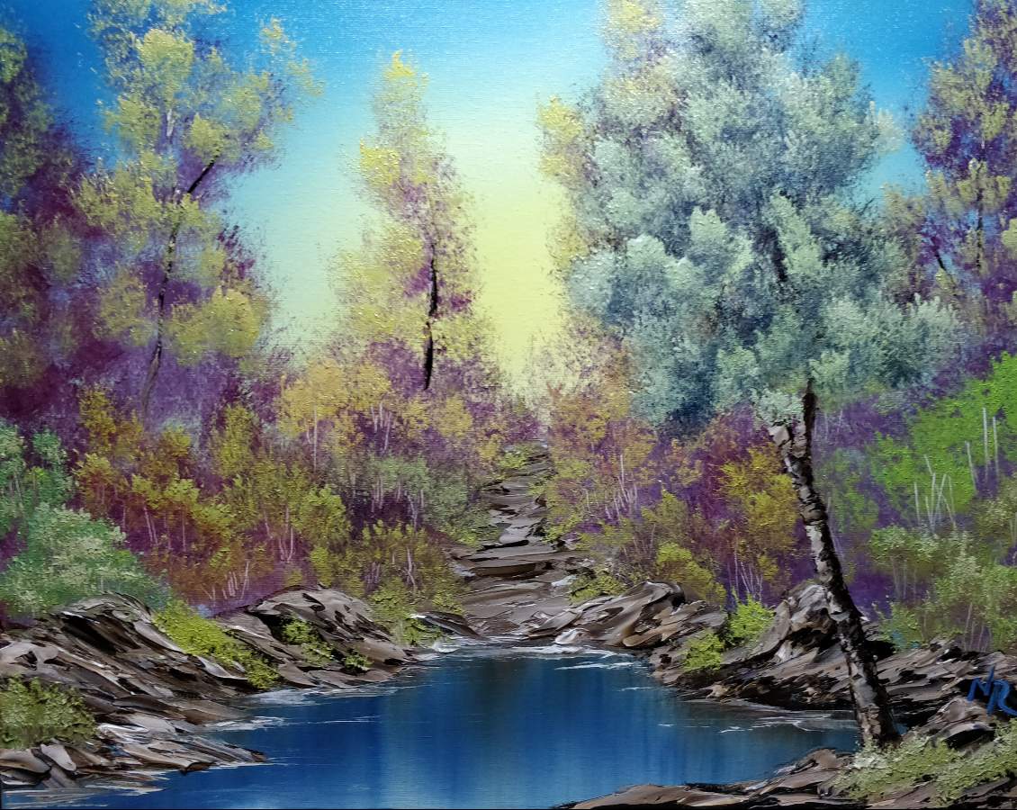 Your painting came out beautiful! Great job of that sky! Not easy to pull off yellow & blue together without getting green. That pond & reflections are great. And finally , those rocks/land and path are perfect! Love the outcome! 😍