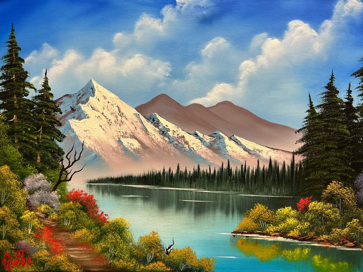 All of Bobs favorites in this one. Fluffy clouds, almighty mountain, and happy trees.