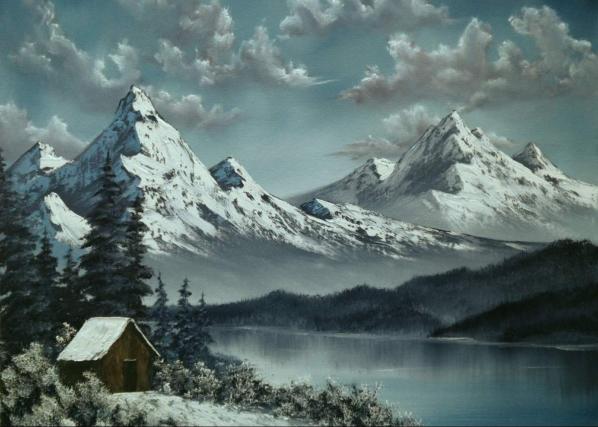 From 2017. I've learned since then that pure Van Dyke Brown is a bit too rich for a frosty winter scene, so now I always dull the brown I use to paint winter cabins.