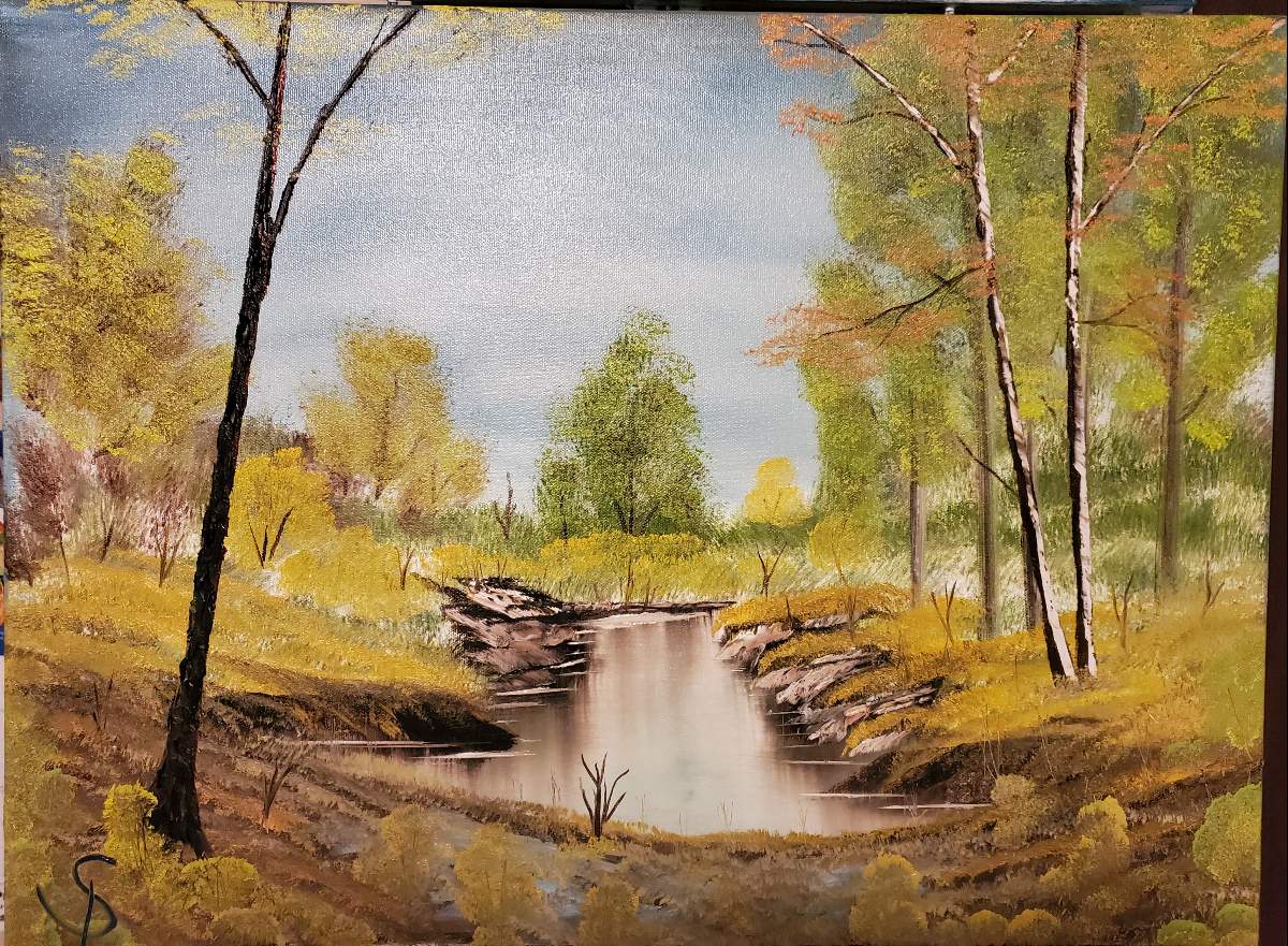 Ugh, always something about my paintings that I don't like. This time it's the background trees.