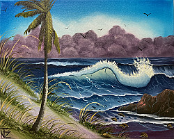 The wave is beautiful. Maybe if you add some white to the clouds? They really do look like they're rolling in.