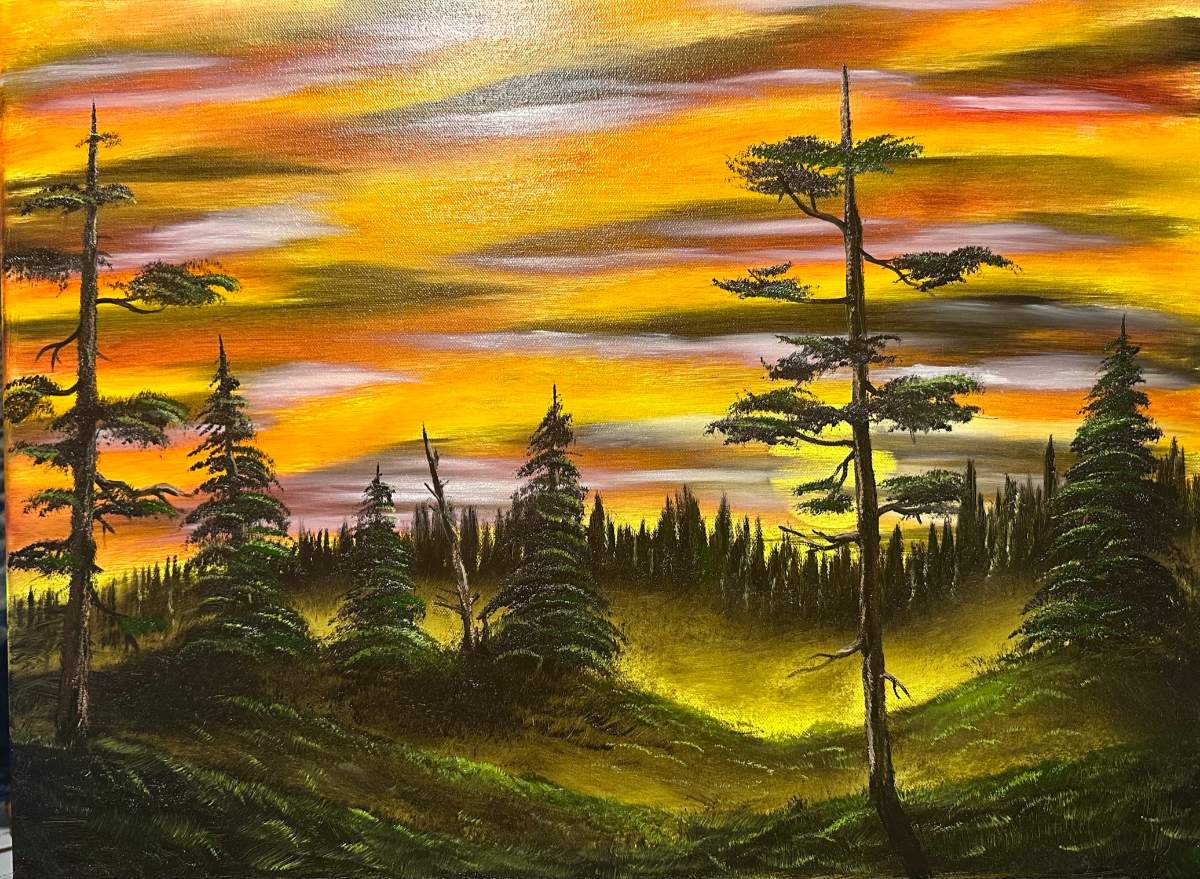 This one was very fun! I added a lot of extra highlights and color to the trees.