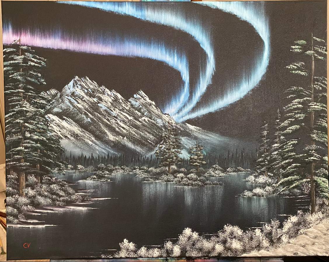 Final product. Kept having to come back because of mud mixing. Definitely not the same charm Bob Ross has. But I like how the path gives the impression of merely walking down a trail and capturing the moment. 2x3ft
