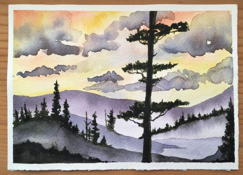 I was excited to work on my watercolor sunsets in this piece.