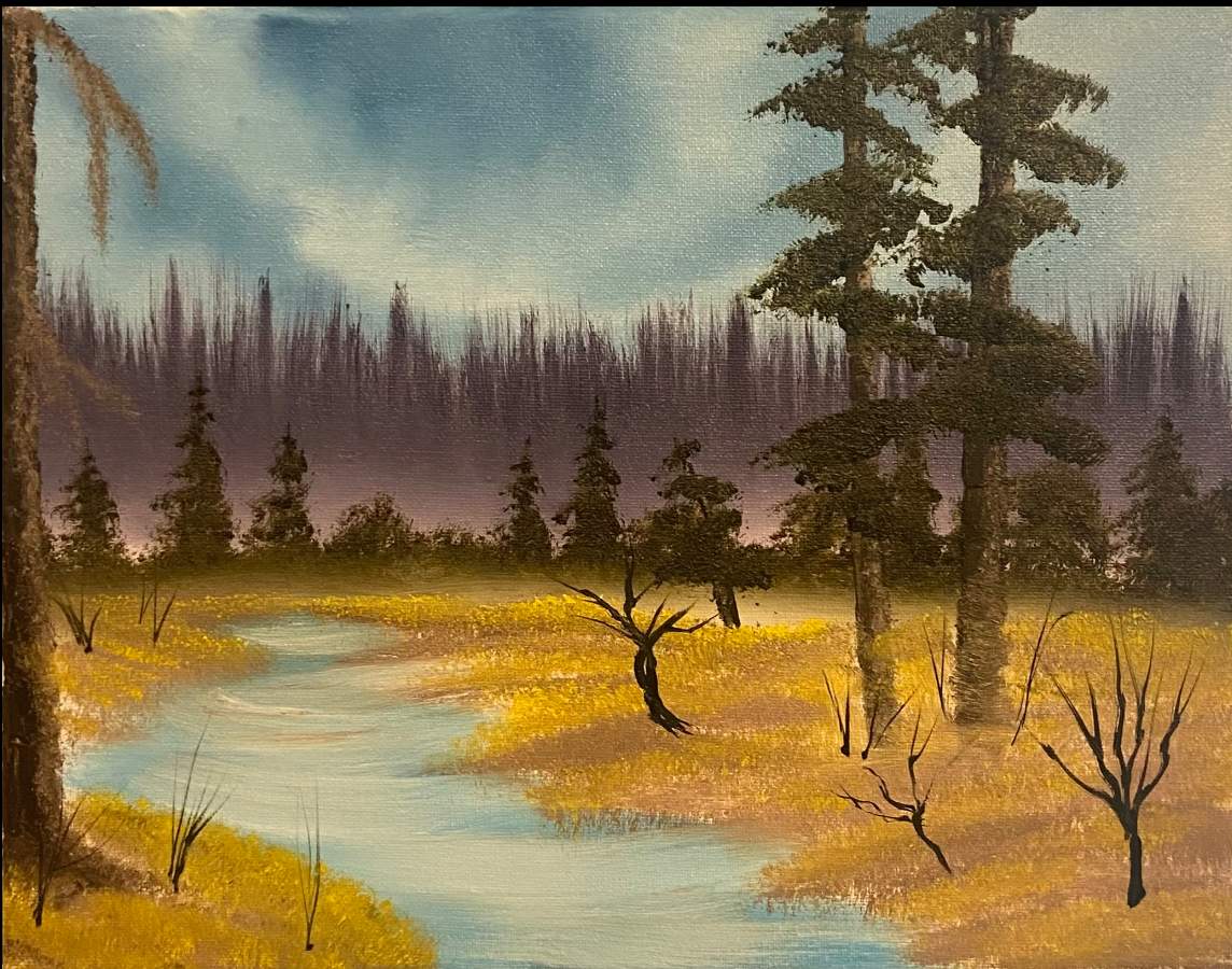I noticed that this one is virtually identical to Bobโs S4E10 Quiet Woods. The snow trail is almost melted. I finally have used all of the 11x14 cheapo canvases and am excited to get back to larger ones now.