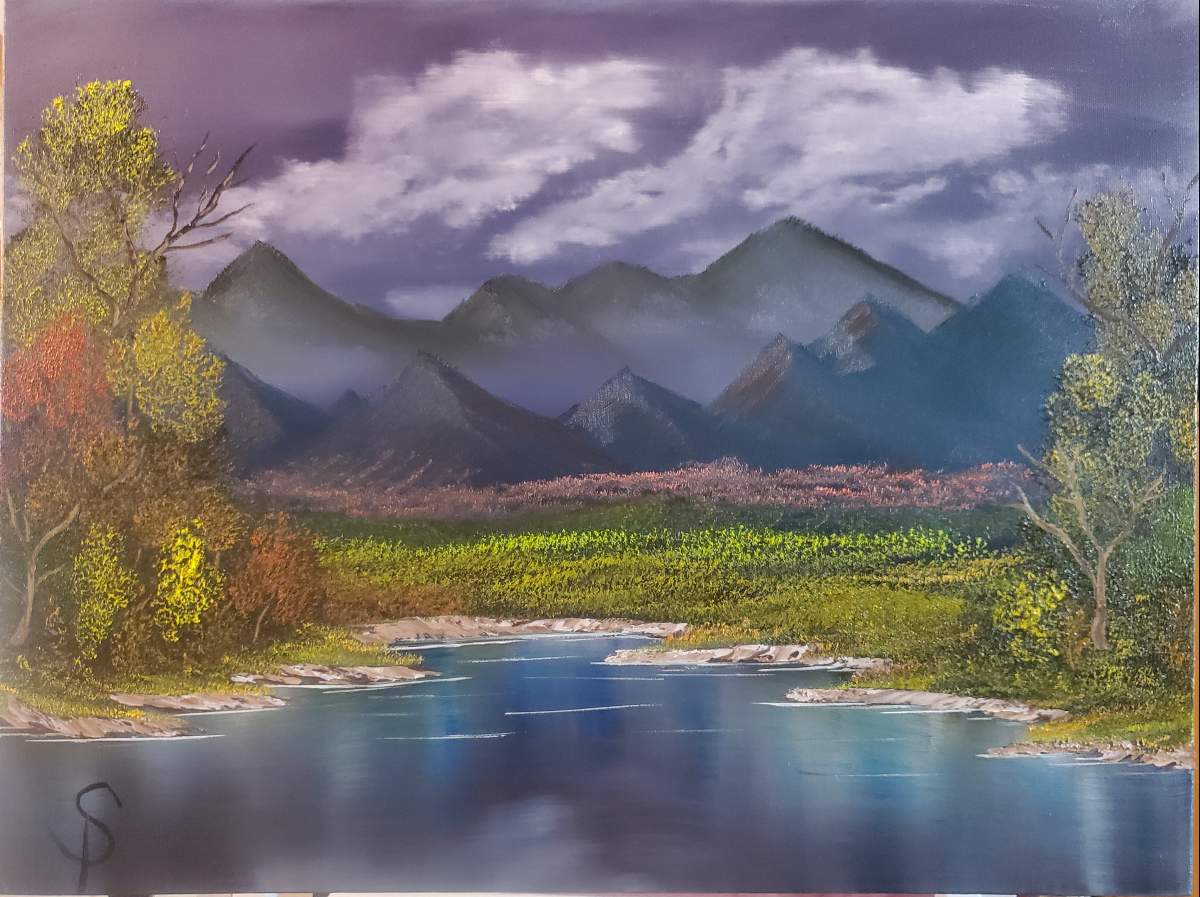Very nice David. Love the mist and the meadows are really nice. Love the color of the mountains. The mountain peaks look a bit pointy in the front row to my eye. Great job overall.
