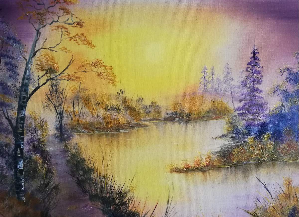 This was the one that got me back into painting after a long break. Not my best, not even my best version of this one but I needed something to rekindle my interest. Something new I tried was using the heel of the knife to make the long grasses. I was surprised how I could get them to bend like that and it's easy to get carried away but I'll definitely use it again.