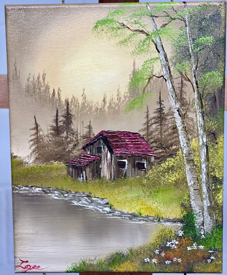 A thoroughly enjoyable painting to do. I was riding the struggle bus, a little, trying to make the little rocks using a liner brush instead of a Filbert brush. Shoreline still doesn’t look particularly natural, but I was able to at least make it look better by adding some waterlines and bits of vegetation. I’ve been avoiding painting structures because well, they just scare me. This one came out fairly decent, but still has some definite perspective issues. I so much envy the skills you display when it comes to painting structures using this technique. I just don’t really understand how you can make such nice Straight lines and detailed work using a pallet knife. I love the daisies in this one as well. Pretty easy flower to paint.