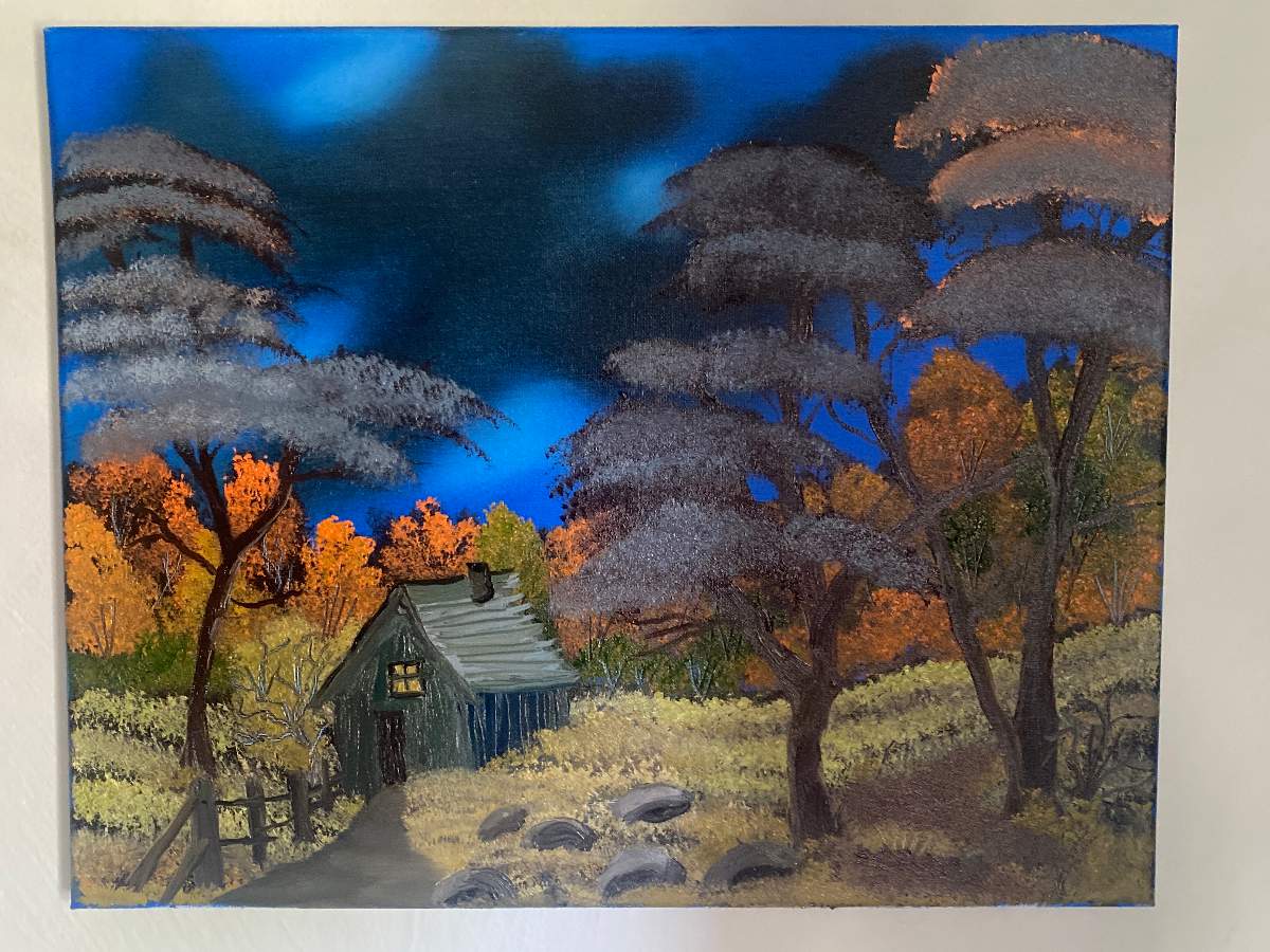 My Home before Nightfall. My third Bob Ross style painting ever attempted.