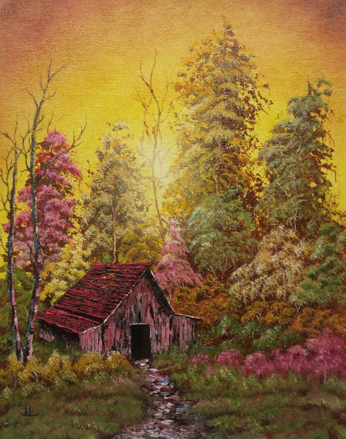 To complete this season I had to paint this one, so here is my version of an old barn with a "projection" on canvasboard 24 x 30 cm.
