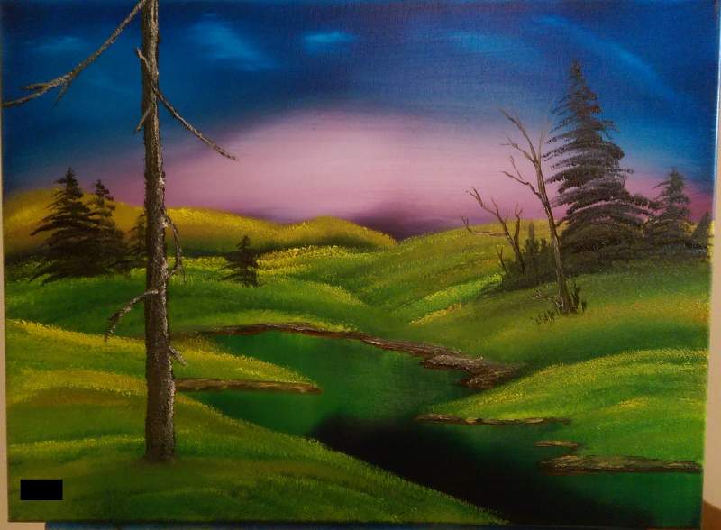 7th painting. I chose this because I've been struggling with controlling colors and avoiding mud-mixing (especially greens & yellows). This painting is all about that. I struggled a lot on it but really enjoyed it. It is hard to think about "shape and form" when I'm just trying to get the colors to be varied. This one is fun if you like painting with lots of pure color.