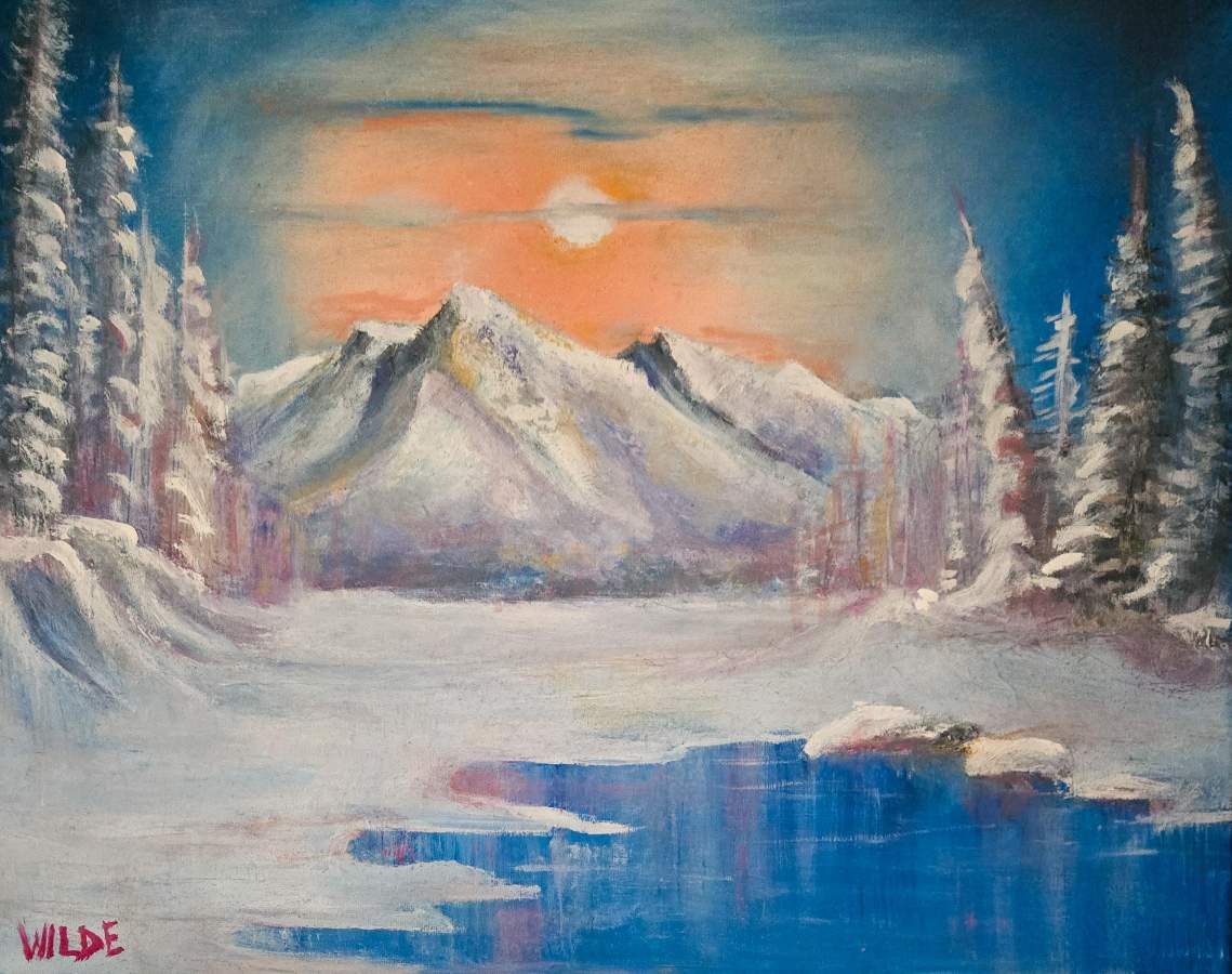 That's exactly how I felt when I first started. Don't ever worry about your painting not being the same as Bob's, a million people could paint the same picture and they would all be different. Practice your detail work on a cheap practice canvas, you can wipe it off and use it over and over again. You will get there. Your trees on both sides draw my eye into the centre of the painting which is good, but I go straight to that blue spot at the foot of the mountain and I can't see what it is. I would blend that away a little bit so it's less prominent. You definitely have space for a little cabin in the midground left of centre. Keep at it, you're doing good.