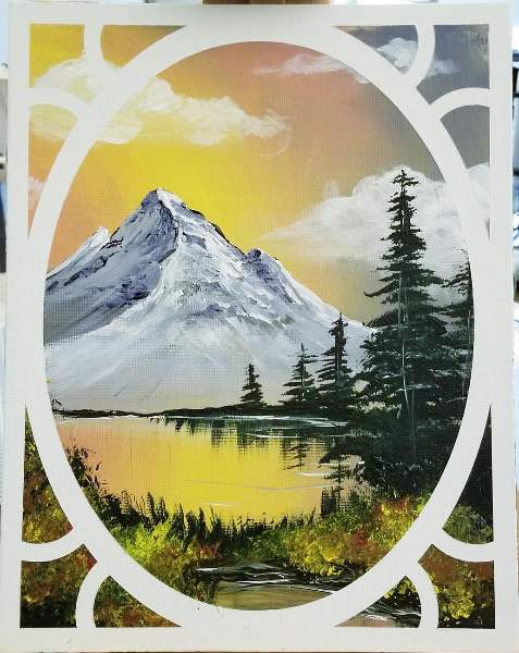 Sure, I am a vinyl installer so I have a plotter and lots of vinyl scraps that I use. I design the borders in CorelDraw, cut them, stick to the canvas, then coat with white and let it dry before I paint. That way it keeps the edges nice and crisp.