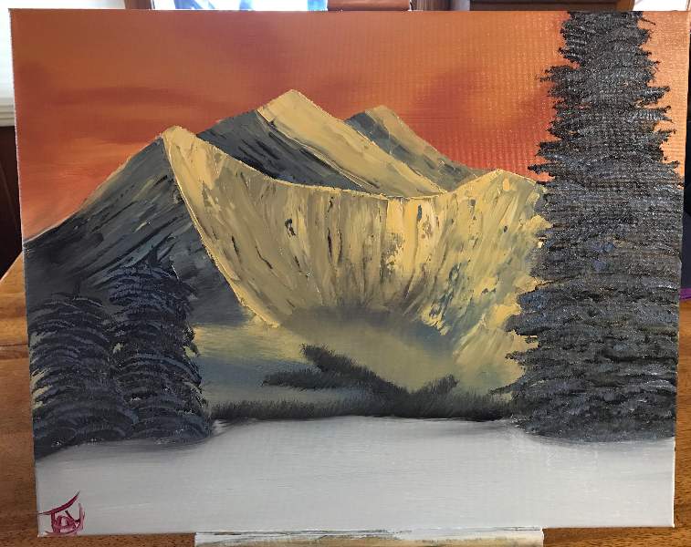 Struggled with my mountain, but overall I’m satisfied. It’s only my 6th painting ever, after all! :)