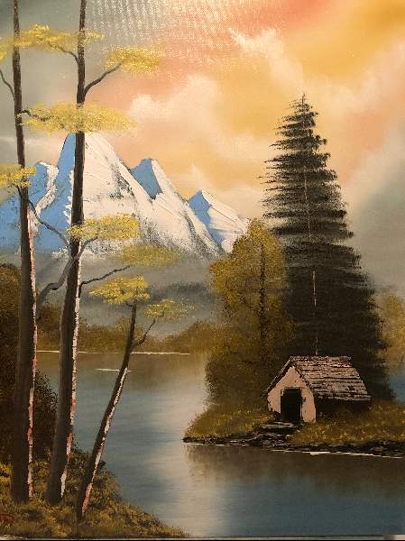 It is a very nice painting and most of all, my admiring attention was drawn to your clouds, the grass and the cabin roof!