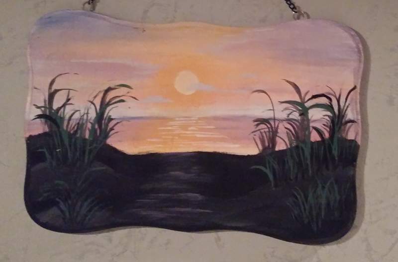 This is on a wooden plaque. My first attempt with sand and dunes and I was amazed at how much I like the dark sandy foreground look.