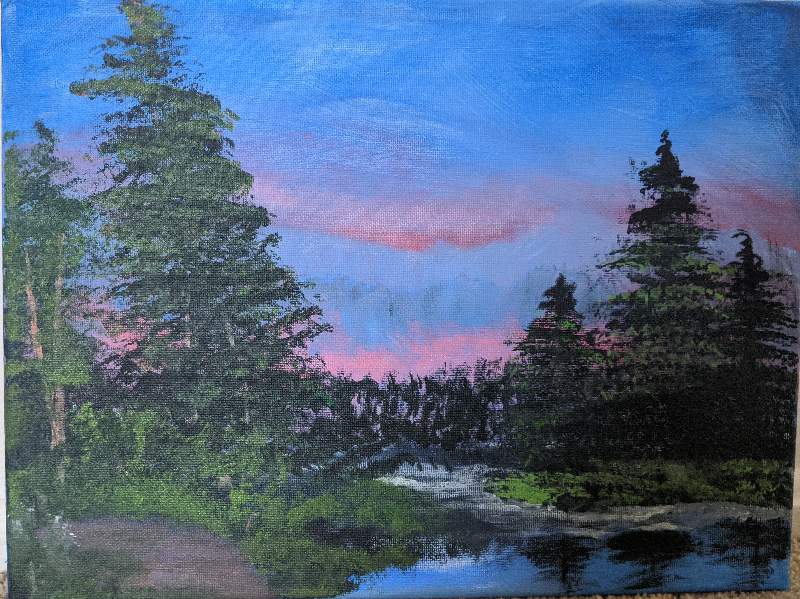 This was my first painting that I did with Bob! I had the most fun painting the trees. I really loved how easy and simple the little indications of tree trunks was.
