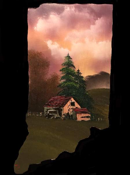 I made this one on a wood plaque (which was quite different) in the shape of my home state of Indiana. I thought it turned out ok, wasn’t super happy with my sky so I threw some clouds in there. I like my fence.