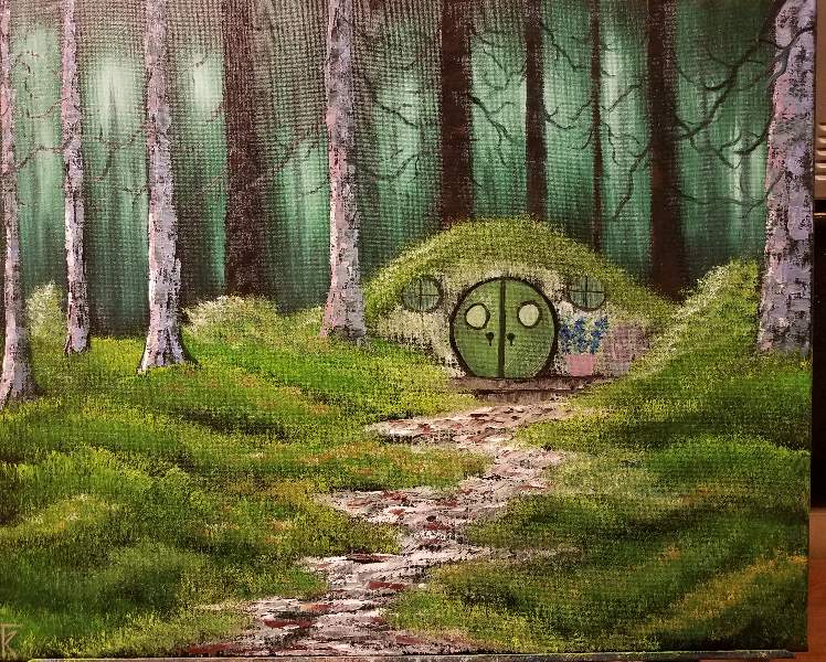I adore this so much and hope you donβt mind if when I do this painting that I take some inspiration from you and also make a hobbit hole instead of a haunted cabin.