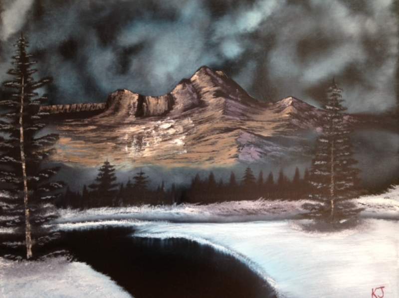 I like the dark background of this painting! Decided against the white trees. Ross oils on 20 X 24 canvas