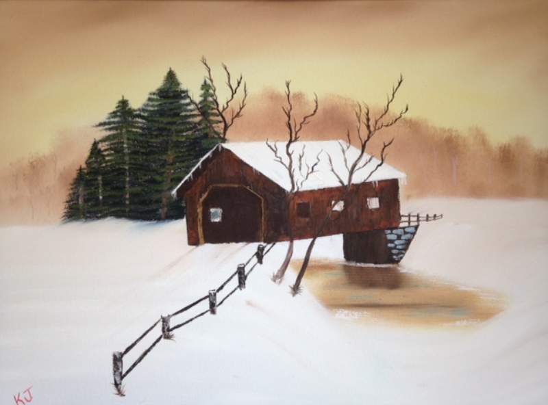 Enjoyed this one. Didn't do the oval and keeping the bridge straight was a challenge! Ross oil on 18 X 24 canvas