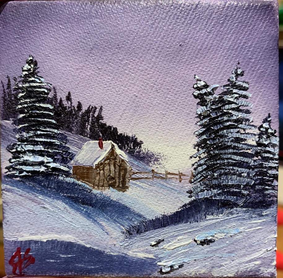 3x3 inch, oil on canvas, to be sent out as part of an art abandonment project! Follow my journey on Instagram at @happylittletreeshhi!