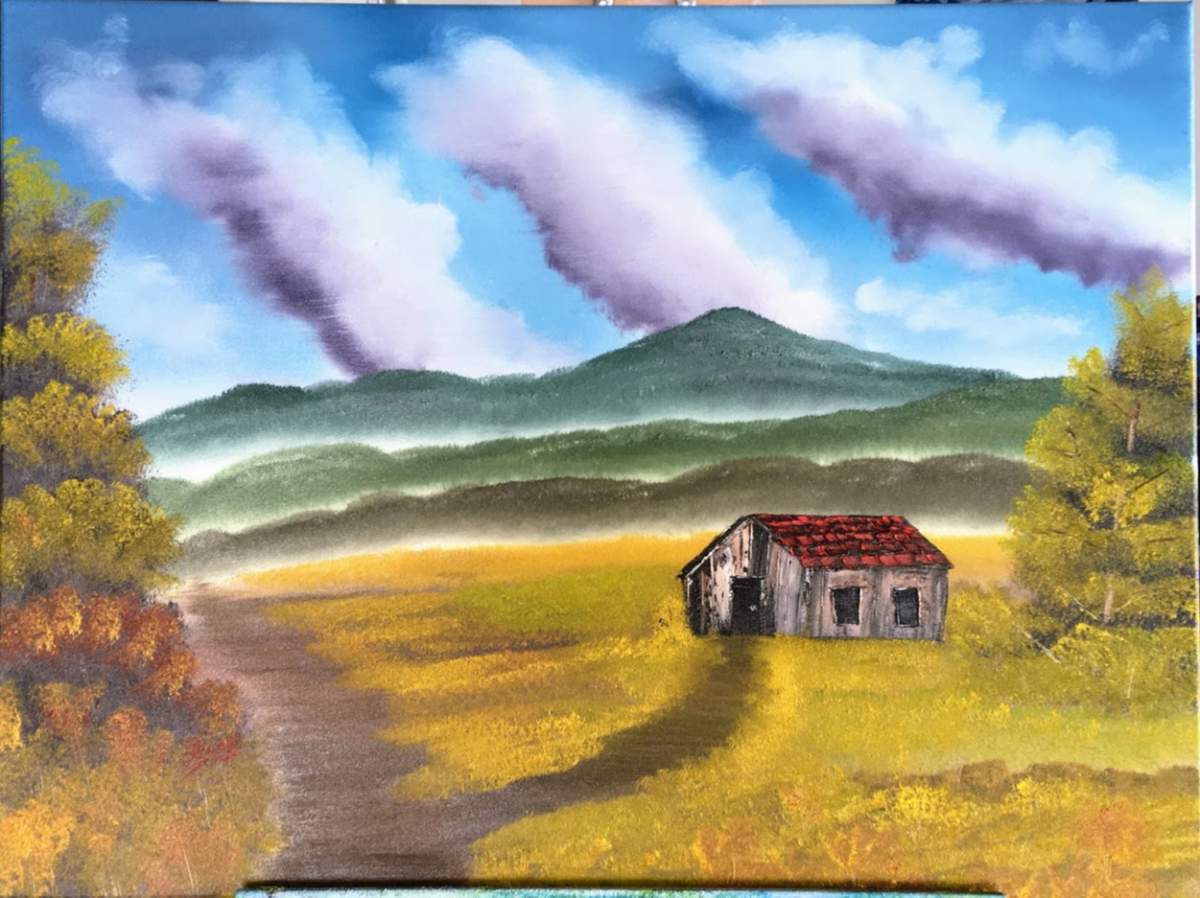 This one was harder than expected. Clouds like these are difficult to get right. Didn't do the last tree as it would've taken too much space and I wanted to show the little path fade away in the distance.