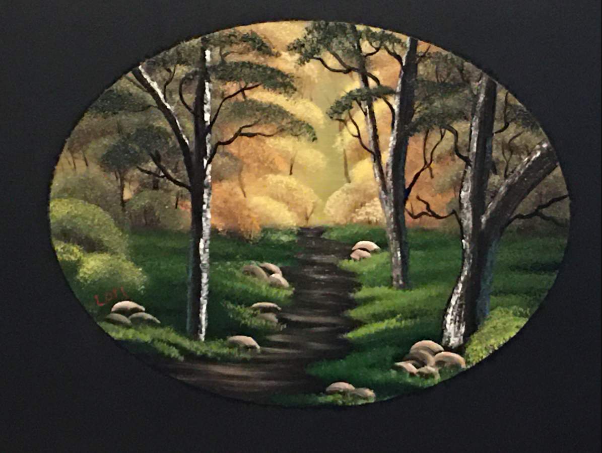 The other seasons would be very nice I'm sure. The two of these hanging together are very striking. I thought the painting was somewhat simple to do. A great exercise in all those tiny groups of leaves. I love the effect with the black around the oval.