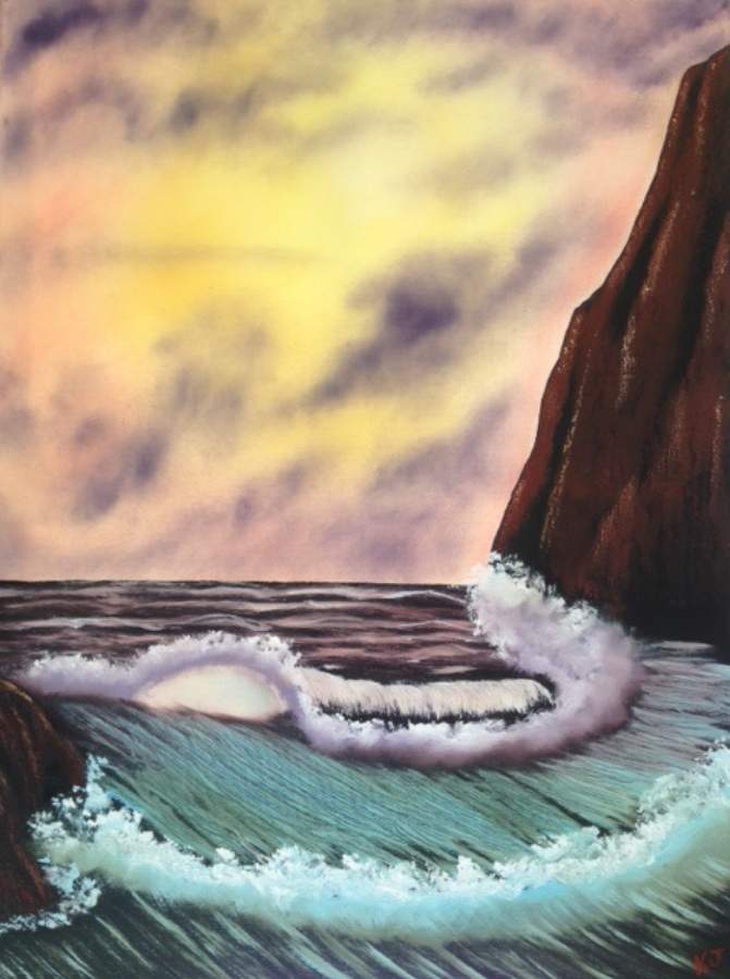 I have wanted to do this painting for awhile. The water coming out of the big wave gave me some trouble. The angle was difficult for me. I fixed it up as best I could. Overall I'm happy with the outcome. A lot of others posting this painting felt it was difficult to use the fan brush to highlight the rocks. It worked well for me! Fun painting. This was probably my best sea foam! These are Ross oils on an 18 X 24 canvas