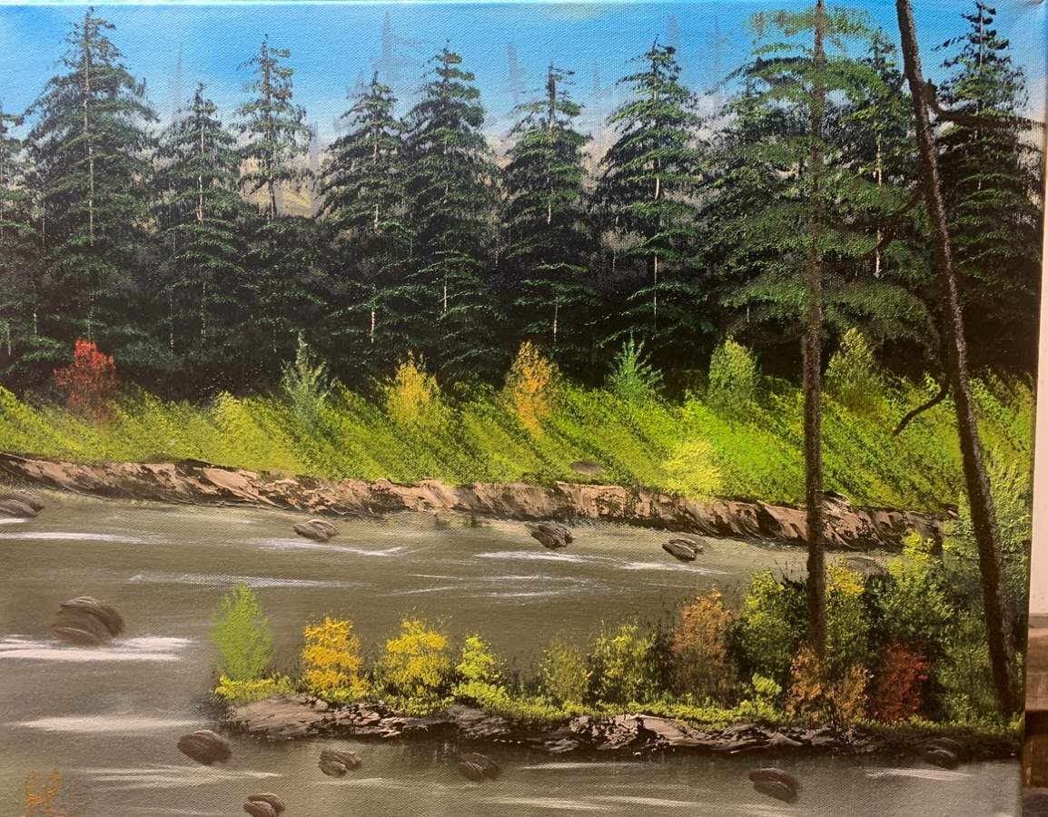 This was a fun one. Had a little issue with my river because I let my under color dry. Did my best to make it work. This is six months to the date that I started painting.