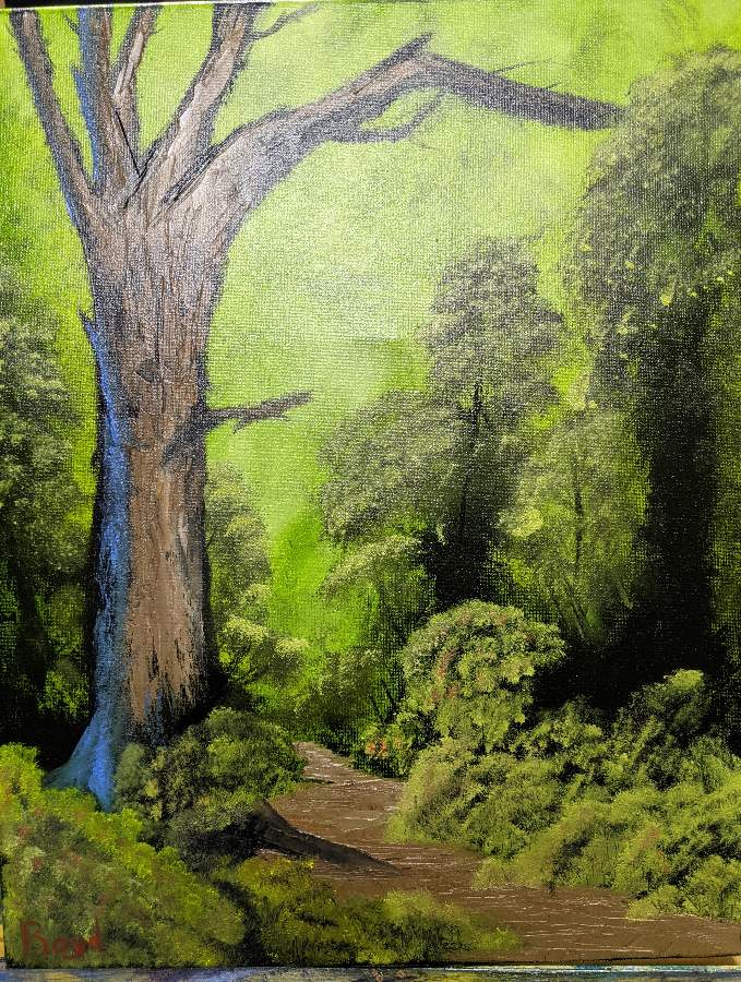 Struggled a bit with this one but I enjoyed the technique of using Gesso as an underlay. Still turned out pretty good but the tree could be a little better.