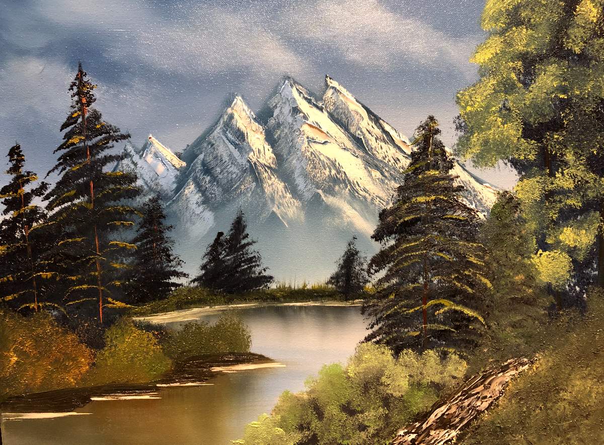 This is my 2nd piece. First time at home, following the video. I really struggled with the foreground highlights. I think I did a little mud mixing, huh?? Any tips are greatly appreciated!