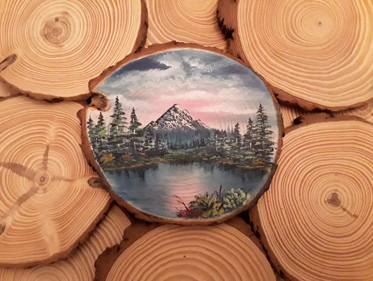 Thought I'd try something completely different and paint this on a wooden slice...it was hard to get all the detail in with it being small but the challenge was alot of fun 😊