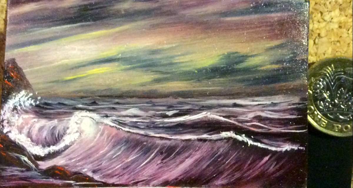 I find seascapes the most challenging of Bob’s pictures. Here is my 2”x3” attempt.