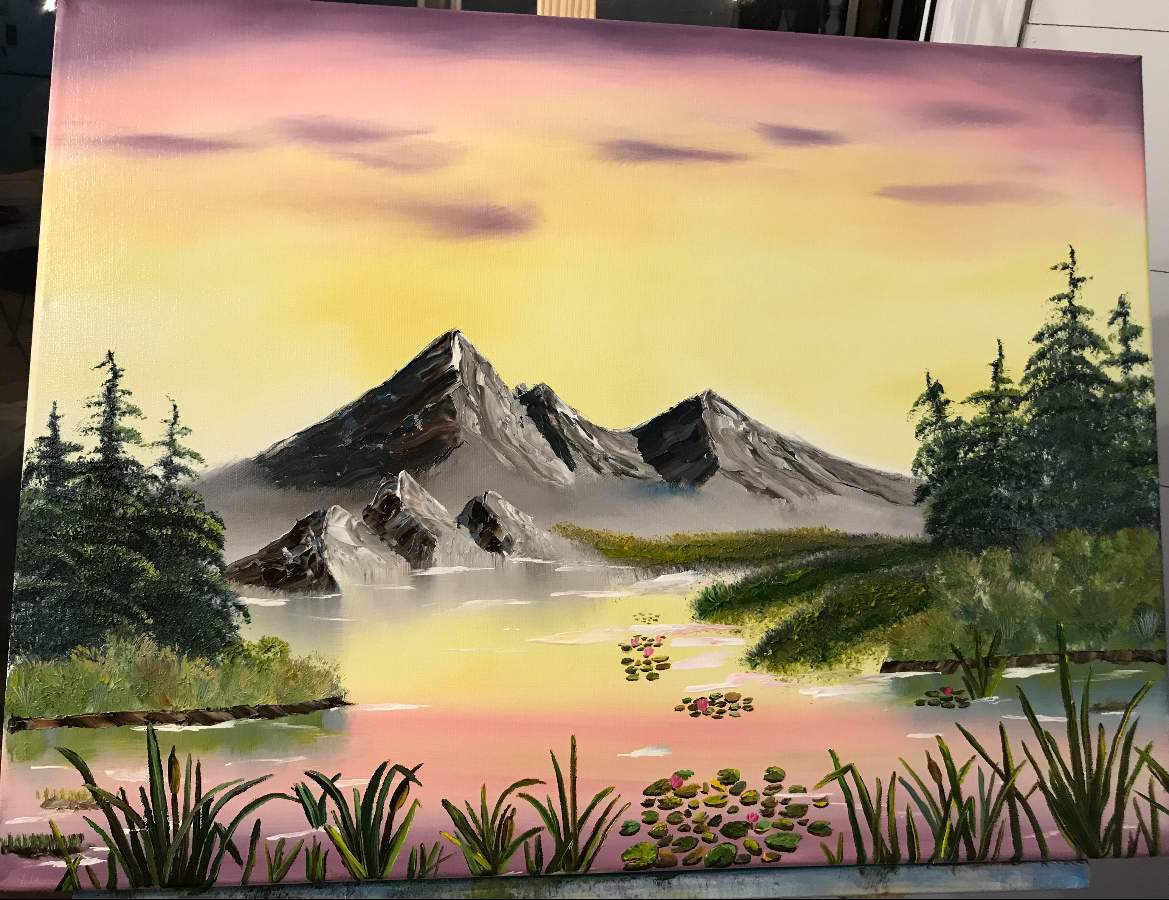 I felt the foreground needed more and I have a photograph at work I walk by multiple times a day with reeds and lily pads and I felt this painting needed them.