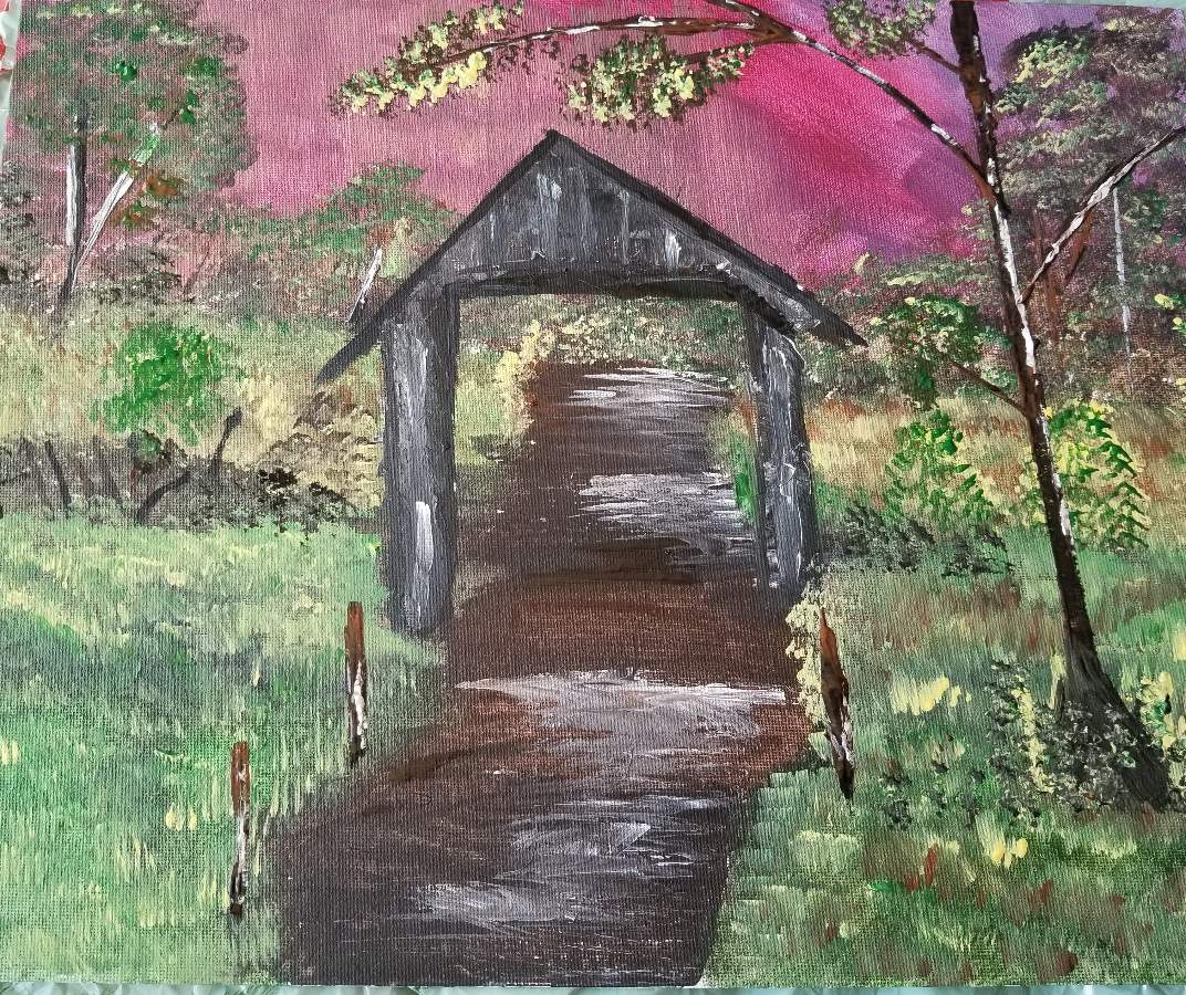 I like this one. I'm getting better at using a knife to paint trees, barns, covered bridges.