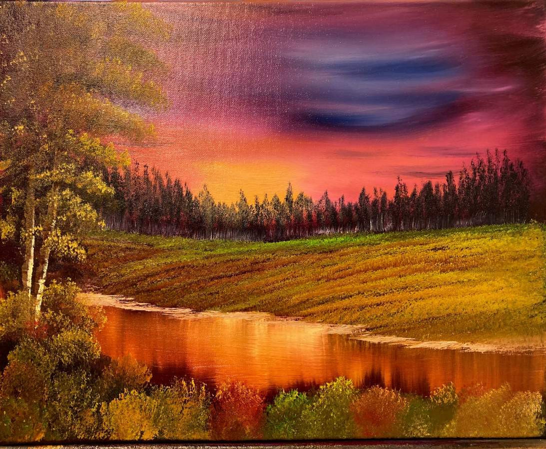I so love the paintings that Bob makes with vibrant colors and I'm pretty happy with how this one turned out. It took me about 3 hours.